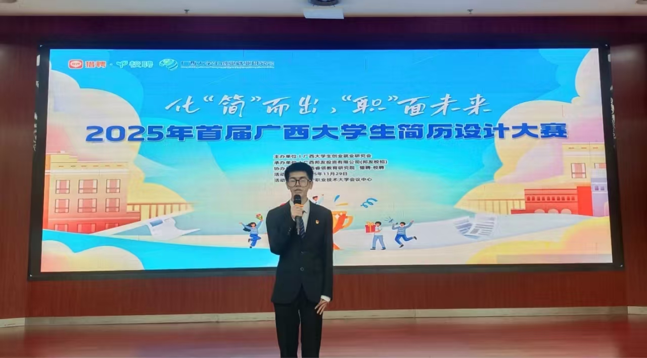 11月29日,首届广西大学生简历设计大赛总决赛于南宁职业技术大学顺利落下帷幕。AC米兰智能焊接技术学院的李显成同学,在“匠心领航”辅导员工作室农璐老师的精心指导下,凭借出色的表现,以职教组第一名的佳绩成功晋级决赛。