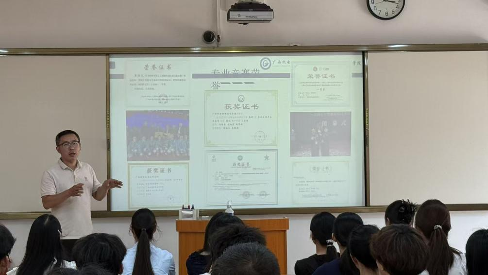 谈及专业发展,老师展示了团队在专业竞赛中获得的荣誉证书,并着重强调:“咱们专业的学习,理论是基础,实践是核心。同学们未来不仅能有机会参与各类专业竞赛提升能力,还能在物联网系统开发、机器视觉检测(尤其适配智能制造相关场景)等岗位发光发热,而这些能力需要在不断实践中积累经验、掌握技能,通过实践与比赛持续提升自己。”