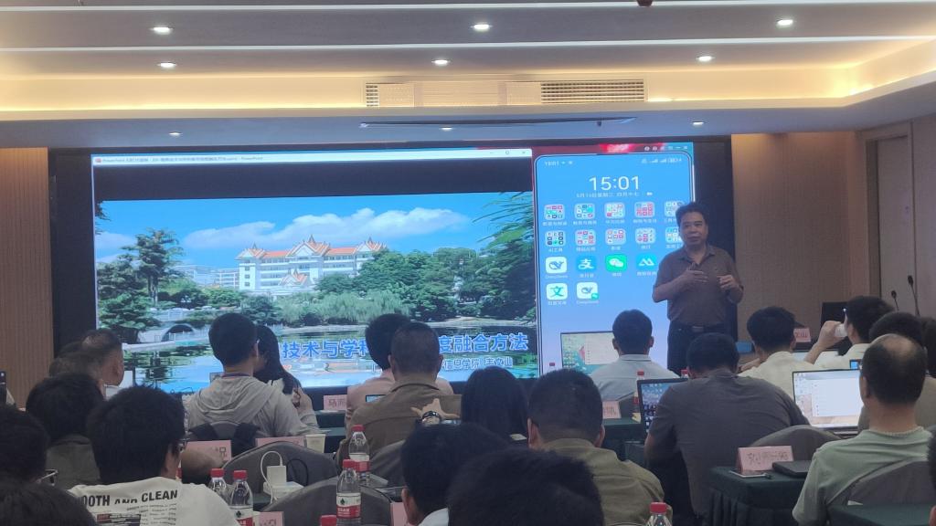 图3 韦文山教授进行“AI技术赋能科研+AI技术赋能学科发展”的授课