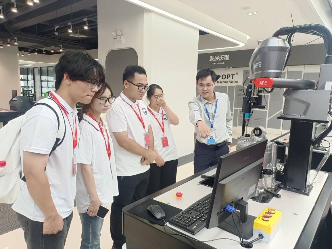在广东奥普特科技股份有限公司调研期间,校企双方围绕产业赛道人才培养进行深入交流,就共建实习基地、联合开发课程等合作事项达成多项共识,特别是在中国国际大学生创业大赛产业赛道的项目指导方面取得实质性进展。